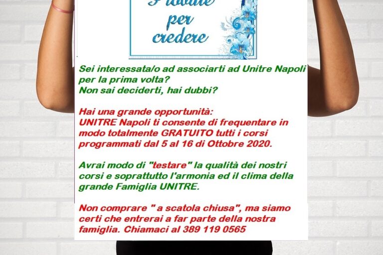 Grande opportunità per chi sta pensando di associarsi ad Unitre Napoli per la prima volta:…